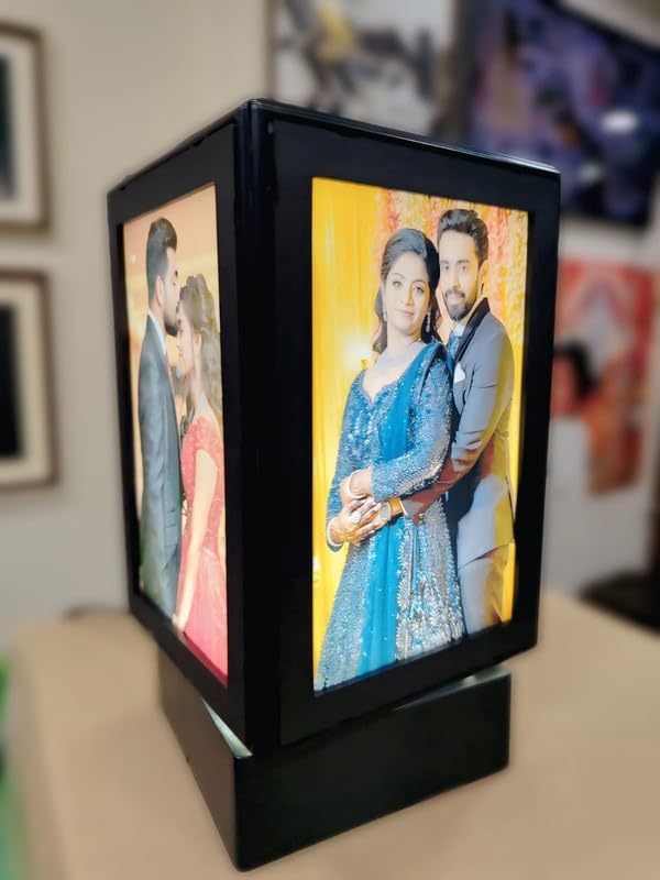 Giftboxwale- Anniversary Gift for Wife Rotating LED Photo Lamp with 5 Photos|Customized Gift for Couple Special|Personalized Gift for Husband,Custom Photo Gifts (Big)